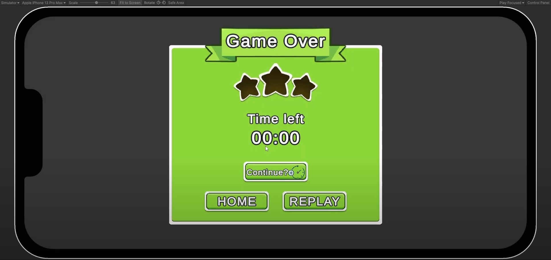 หากเวลาหมดแต่ไม่ได้ดาวเลย --> Game Over
